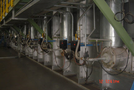 该系统是由六大子系统(退火炉主体、助燃空气换热器、空气干燥换热器、风冷段、水冷段及干燥段)构成了冷轧连退生产线,解决退火过程中六大子系统的相互匹配,及在保证质量的情况下,能源消耗与退火产量的优化问题,旨在系统地节约退火过程中的能源消耗。通过现场各区段的热工测试和计算分析,得出目前热工操作过程中燃烧风量过剩,烟气带走热损失增大;水冷段流量过大造成,使冷却水有效利用率下降。提出节约能源的具体操作措施及改进建议,使燃料得到充分燃烧的基础上减少供风量,降低了烟气热量的损失;水泵采用变频技术使水量跟随产量进行有效的调节,取得了较佳的节能效果。